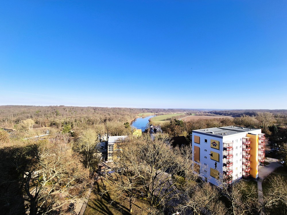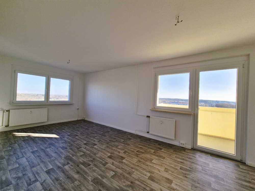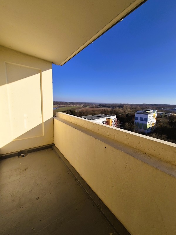 Die moderne 2-Raumwohnung überzeugt mit ihrem einzigartigen Ausblick über die Stadt mit Blick ins Muldental.